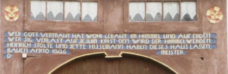 Bild: Dorothea Sophie Henriette Schake wird Husemann geb. 1800; Vahlhausen-Nr--9 Husemann Hausinschrift von 1846 |